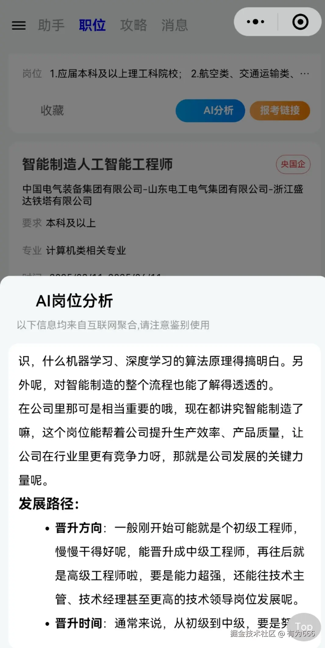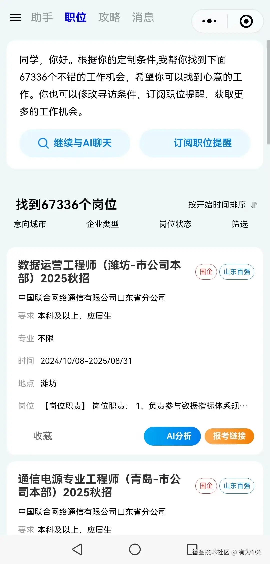 - 央国企岗位机会:因央国企各大招聘分散不集中,建议使用第三方岗位聚合工具,岗位是每日增加的,比如“找北求职小程序”,可以岗位分析➕岗位提醒➕一键网申,软件相关的使用可以私信我。