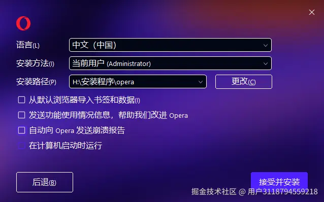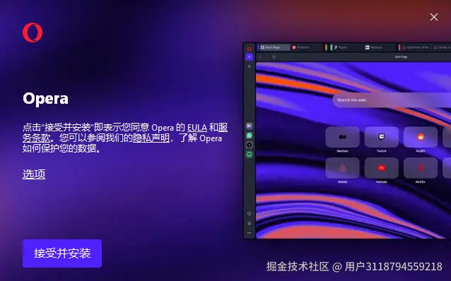 Opera_119.0.5497.56_Setup.exe文件。 - 若弹出 用户账户控制(UAC) 提示,点击 “是” 允许安装。
