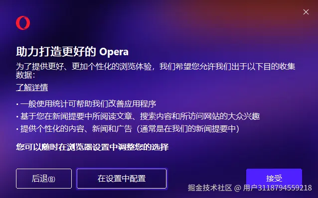- 可选勾选 “将 Opera 设为默认浏览器” (根据需求选择)。