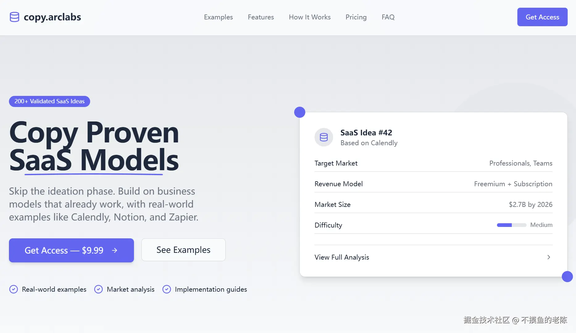 copy.arclabs是一个包含200+ SaaS & MicroSaaS产品创意的数据库,分析了每个产品的用途、目标用户、盈利模式、市场规模和构建方法,为开发者提供参考。