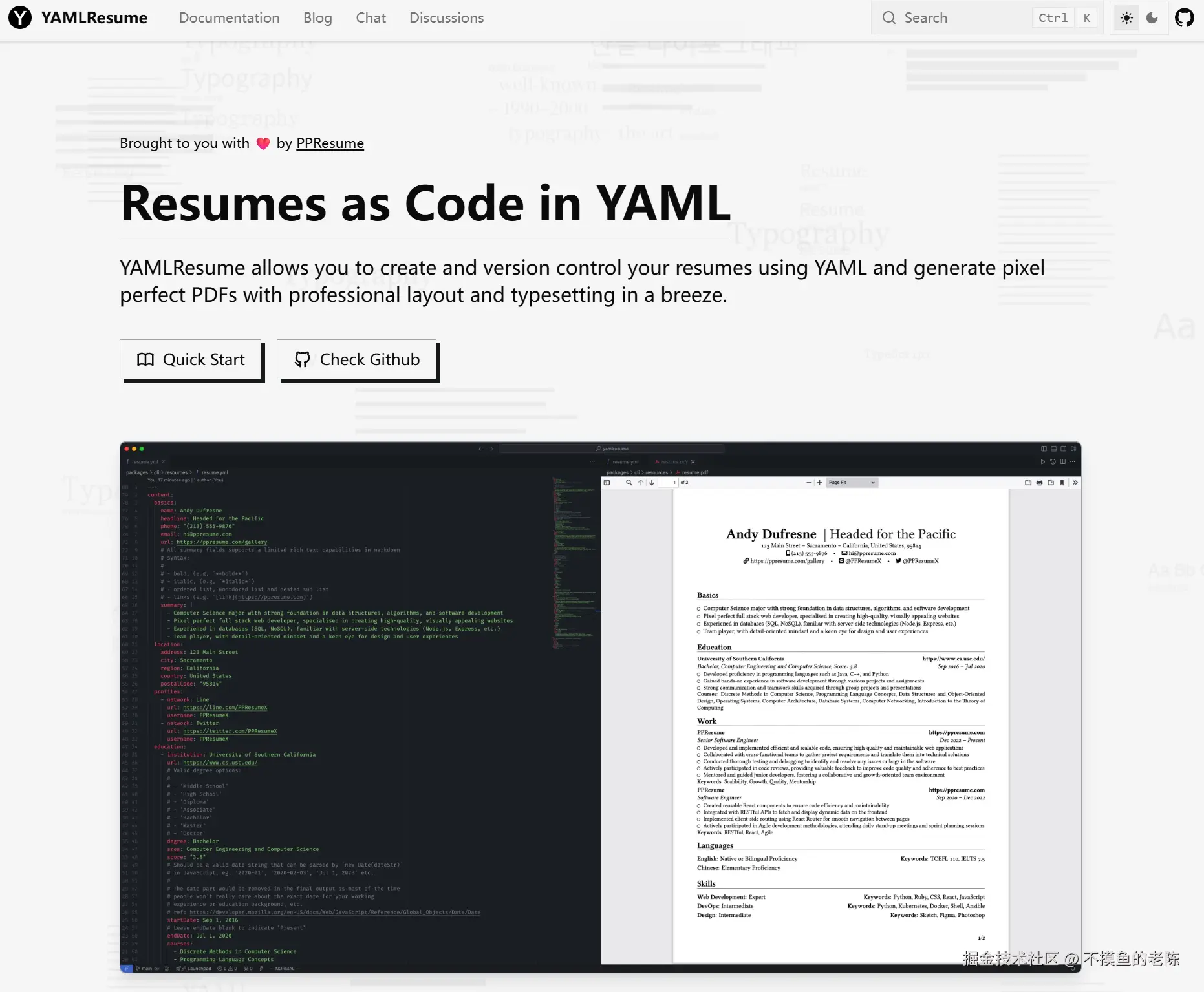 YAMLResume是一款简历生成工具,可以使用YAML格式编写简历,支持Markdown富文本,并集成了CLI输出等功能。