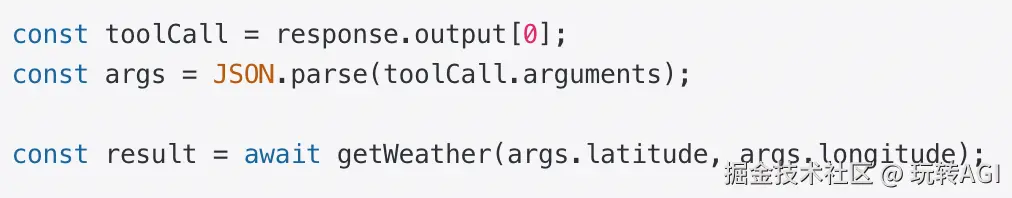 ● 模型检测到需要使用工具, 返回相关工具参数