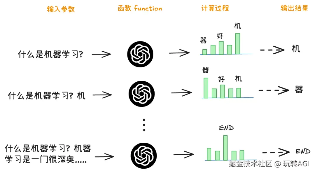 大模型回答问题的过程, 就是一个循环执行函数的过程.