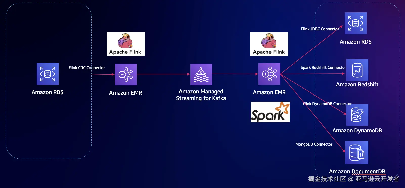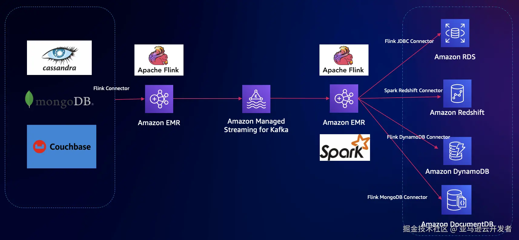 参考:《合纵连横 – 以 Amazon Flink 和 Amazon MSK 构建 Amazon DocumentDB 之间的实时数据同步》。