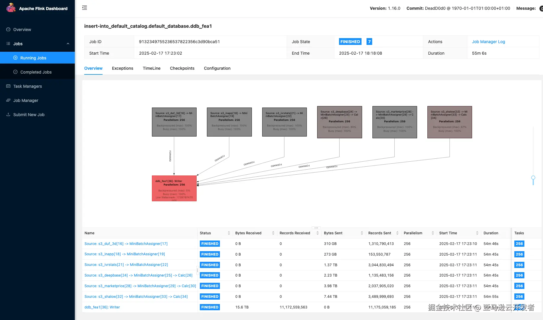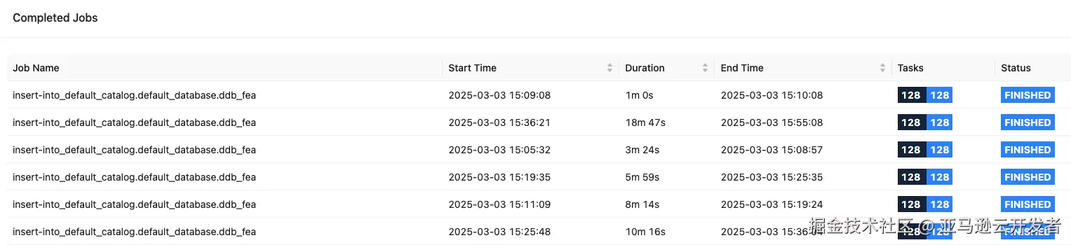 - 这是 32 个 EMR 节点以及 Flink 并行度 128 的表现,可以适当调整 EMR 节点和并行度,以及 DynamoDB WCU。