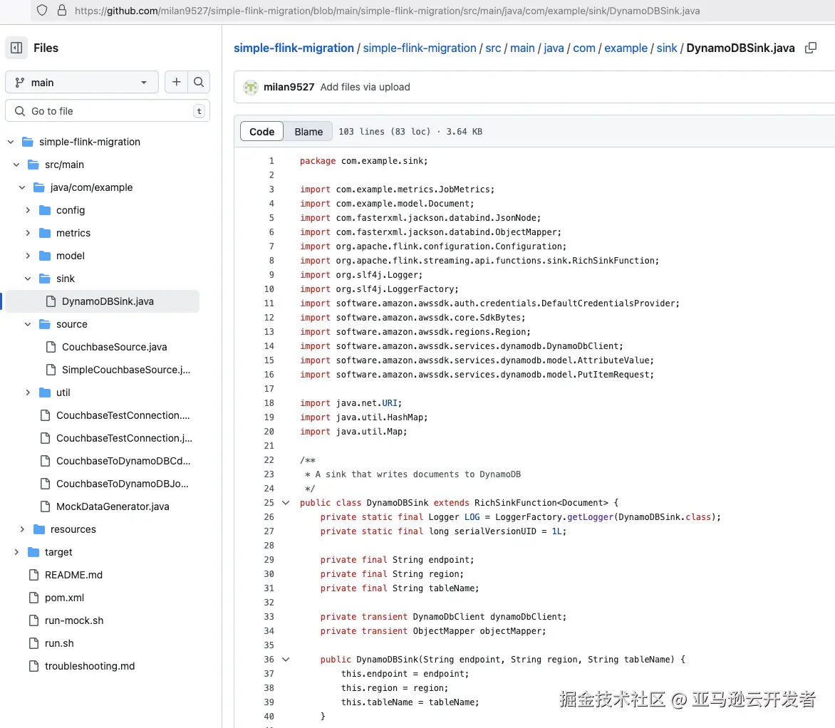 具体实现方式上,Flink SQL 虽然简单,以 SQL 方式操作数据表,但是只支持 DynamoDB Sink 不支持 Source。Flink DataStream API 可以支持 DynamoDB 作为源和目标,需要开发代码。并非所有开发人员都熟悉 Flink,但是 Amazon Q Developer CLI 可以帮助实现整个数据流程、编写代码、构建 jar 包,并提交任务到 EMR Flink 应用。原来即使熟悉 Flink,整个开发过程也需要几天时间,而现在可以让 Flink 帮助我们几个小时完成测试。