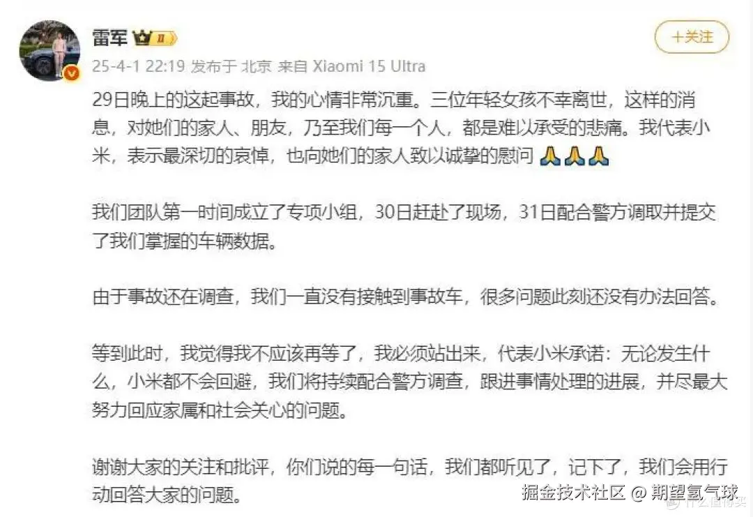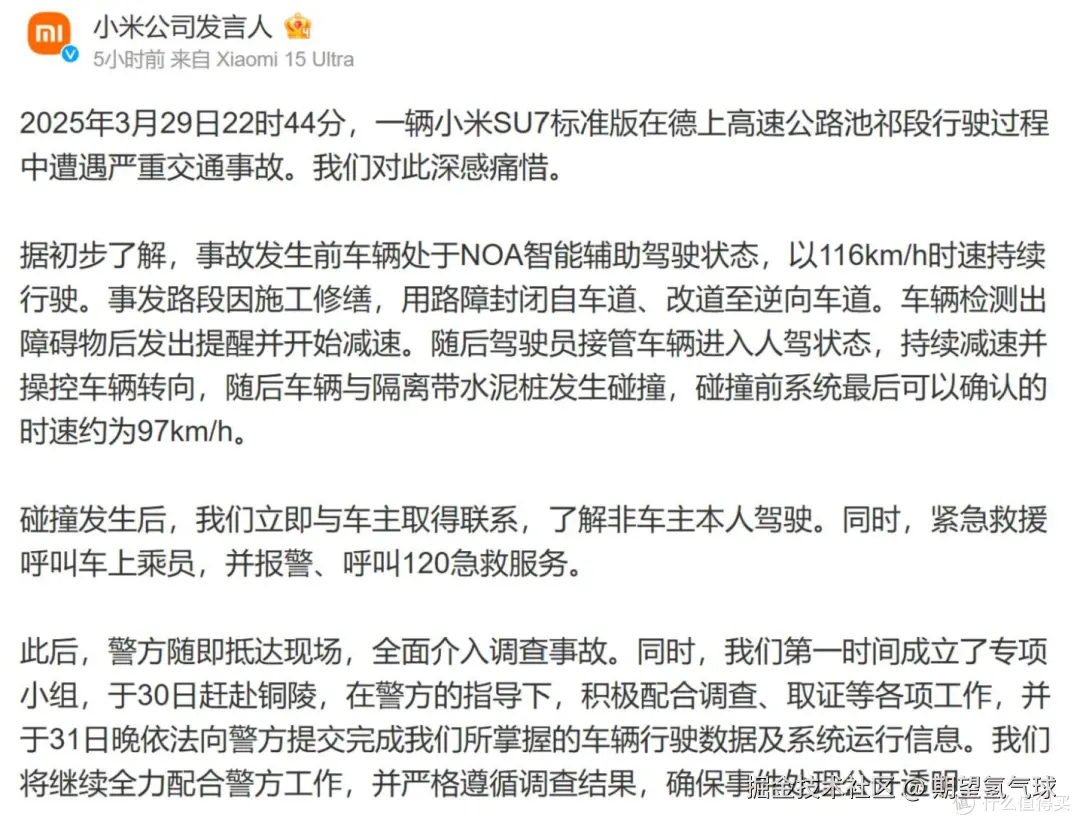 从危机公关角度看,小米的做法有其合理性。小米可能在等待警方调查结果和内部分析后,才能给出更全面的解释。不过,这种"沉默"也可以解读为逃避责任。有评论认为,如果不是舆论压力,小米可能不会主动公开这些细节。尤其是在三条年轻生命逝去的严重事故面前,公司的"谨慎"可能被视为对生命的不够重视。