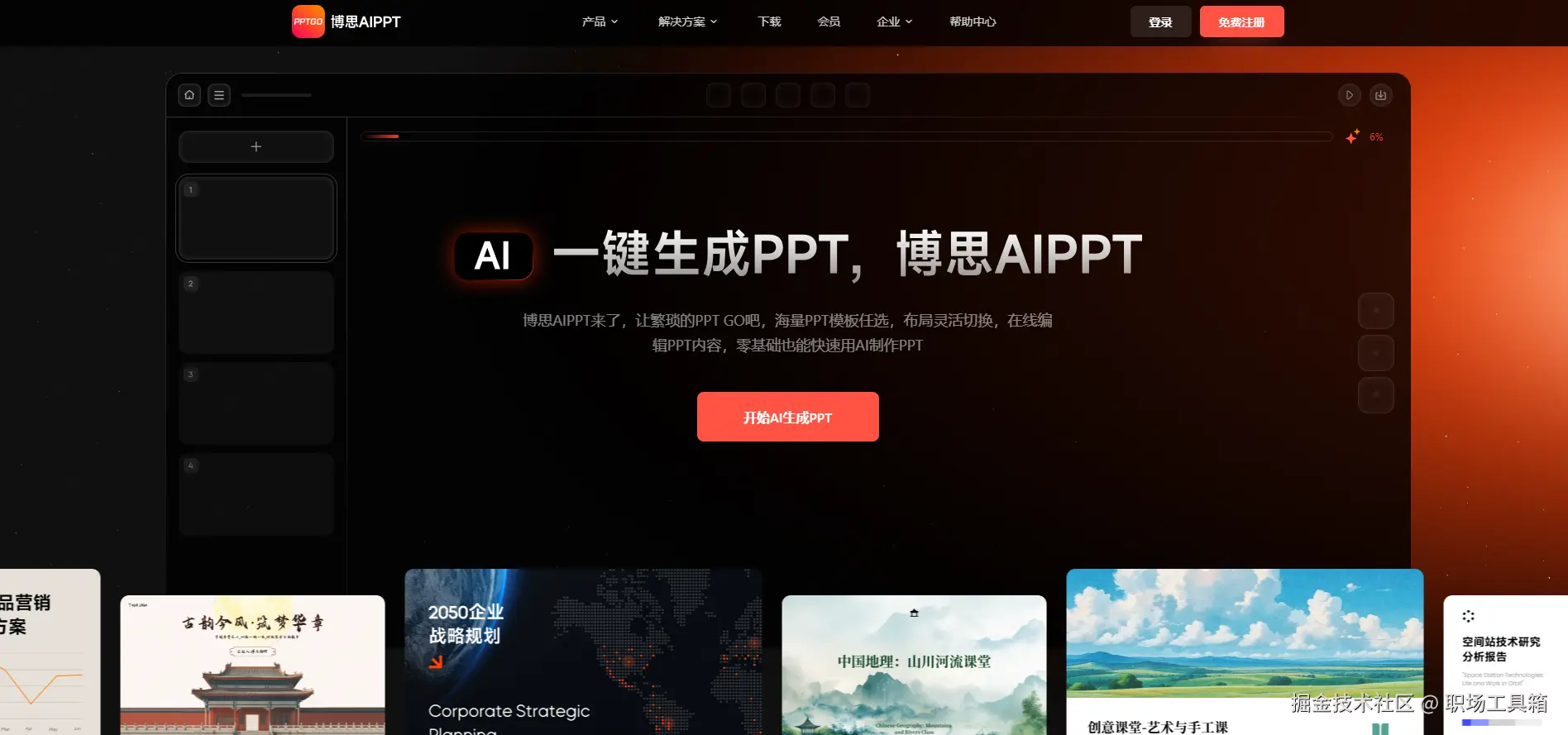 博思AIPPT,是基于国内前沿大模型打造的新一代AIPPT生成软件,集成DeepSeek、豆包和通义千问等主流AI大模型,有望作为Gamma PPT在国内的最佳替代软件,旨在为市场营销人员、设计师、教师、数据分析人员等专业人士提供一个高效的PPT制作解决方案。