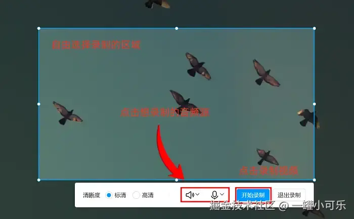步骤2:电脑录屏有声音吗?选择好音频源就有了,选好后,点击 “开始录制” 按钮。