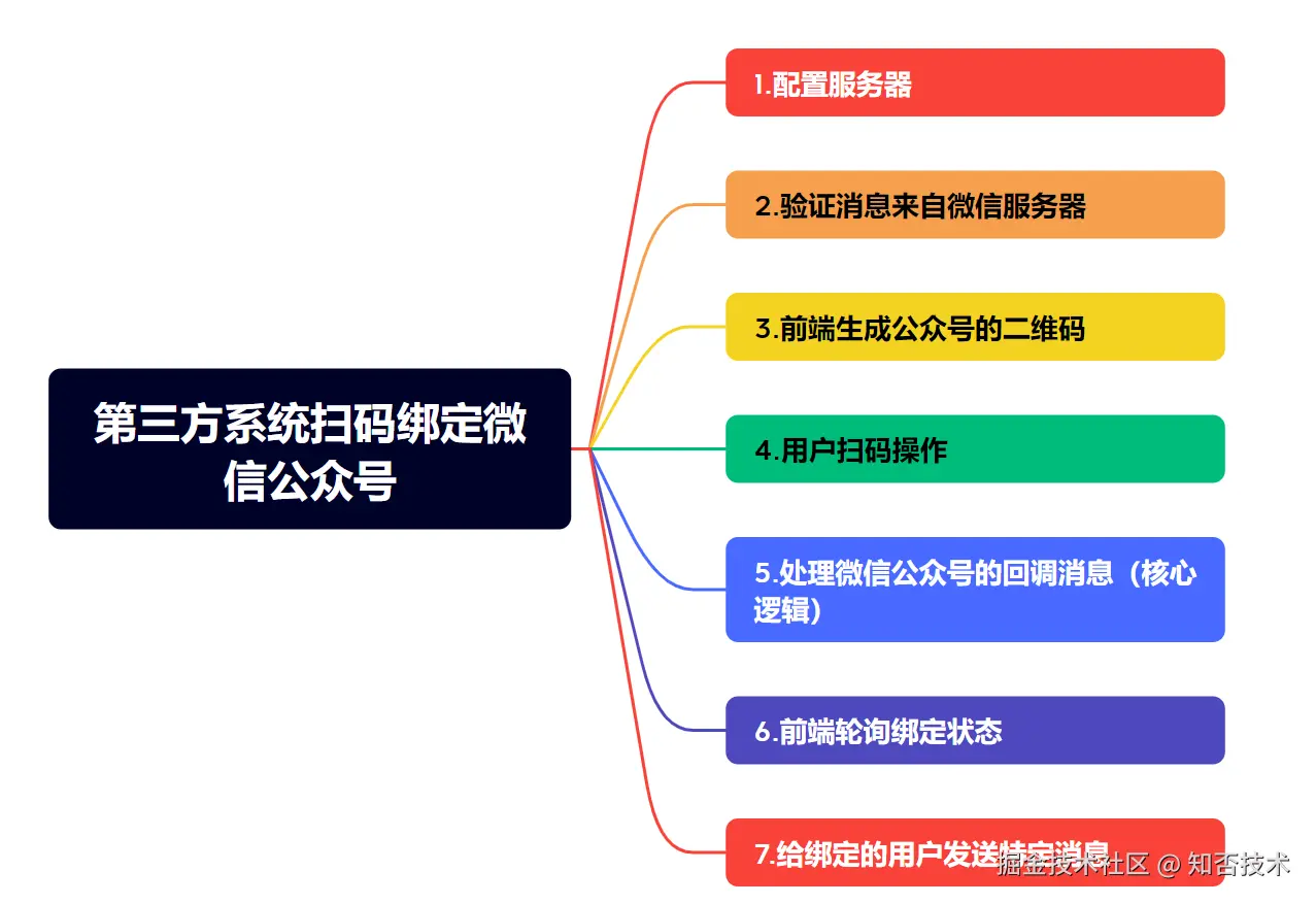 接下来我给大家讲一下第3方系统扫码绑定微信公众号的核心步骤: