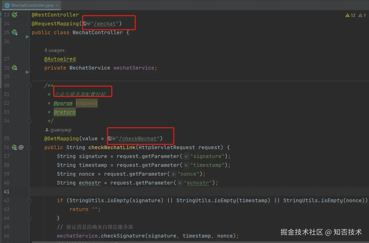 wechatService.checkSignature(signature, timestamp, nonce);