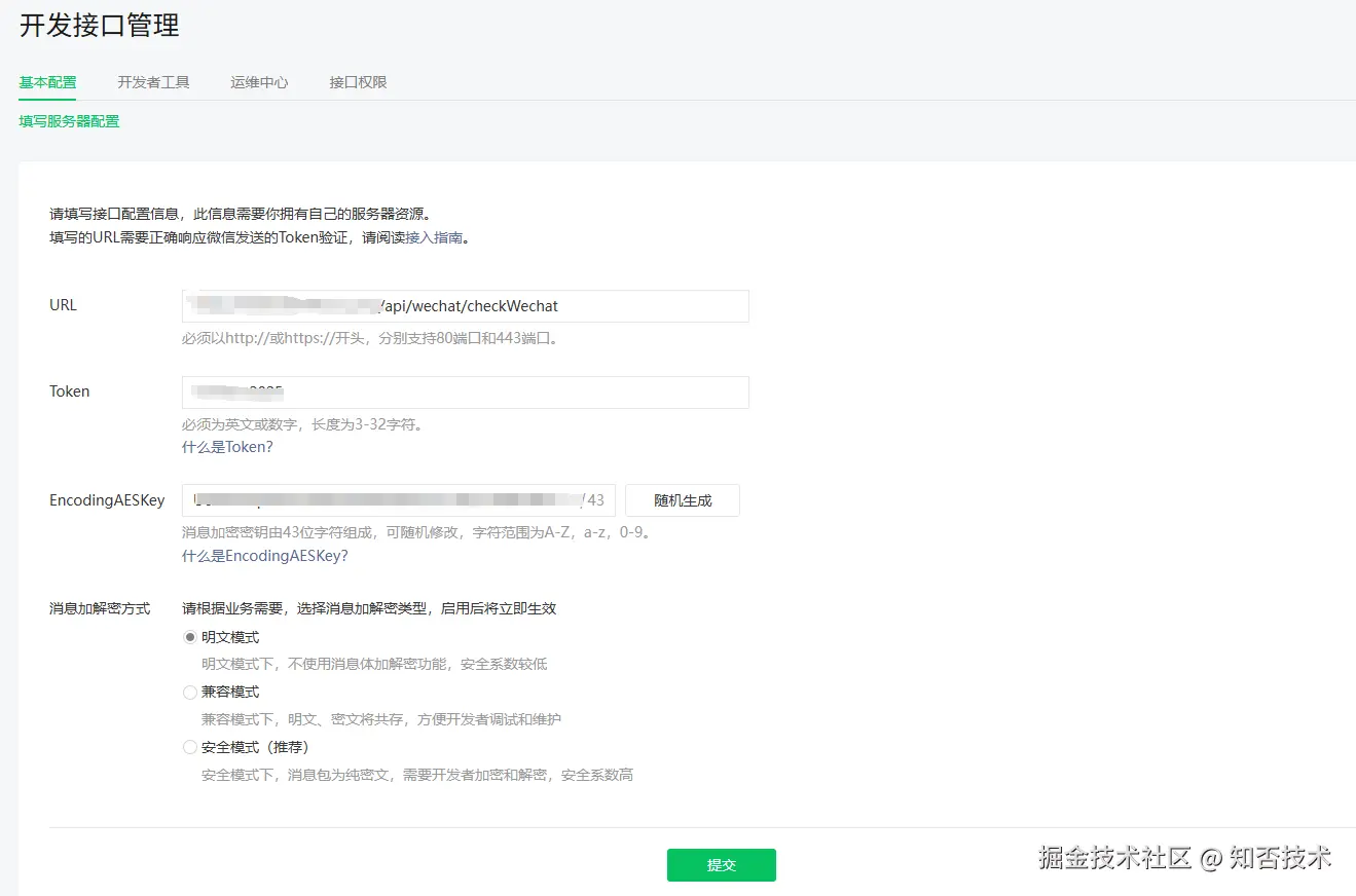 - 消息加解密方式建议安全模式,也就是进行加密