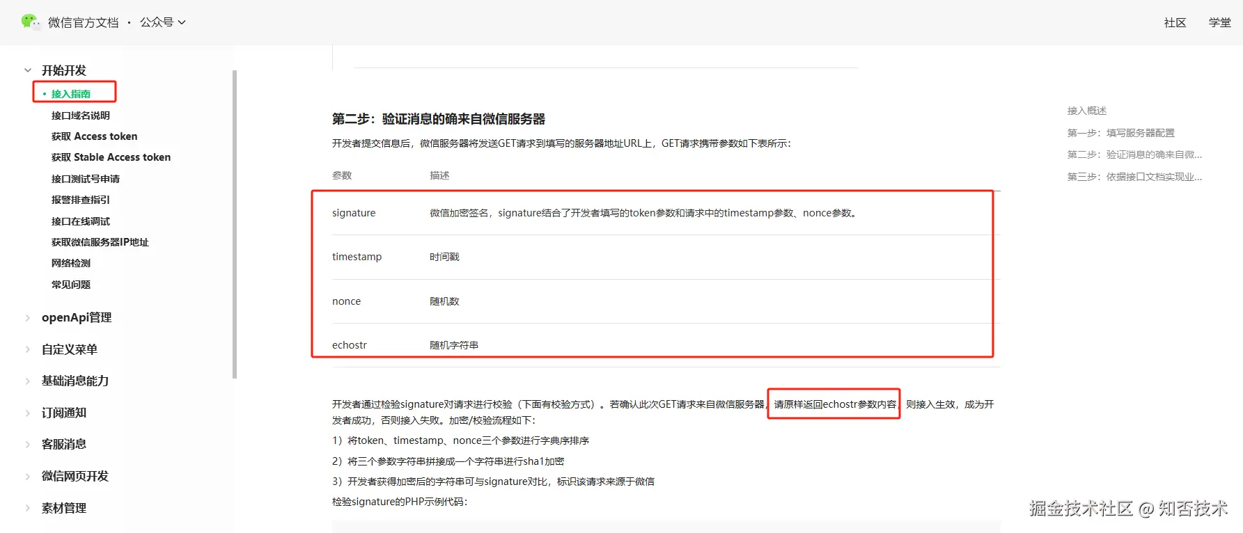 在点击提交之前需要在后台提供一个校验接口:校验成功需要原样返回 echostr 参数内容