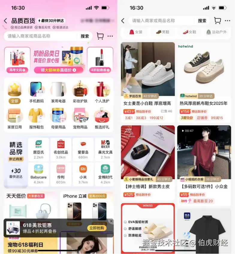 事实上,近年美团闪购已经逐渐分食传统电商的地盘,除了常规的生鲜果蔬、酒水餐饮、药品日用之外,还有一些传统电商平台的优势品类,例如美妆个护、潮玩运动、母婴用品等。