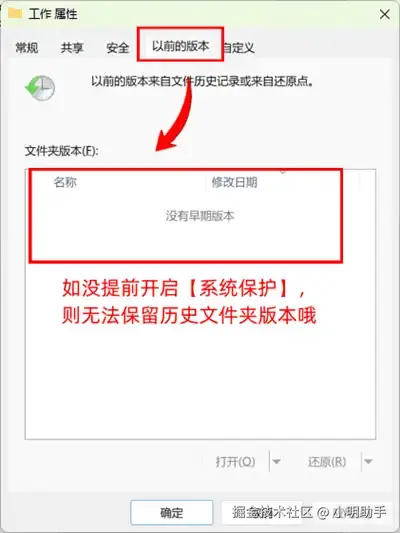 步骤2: 如果有开启【系统保护】或【系统还原点】,则会出现文件的历史版本数据,点击恢复即可。