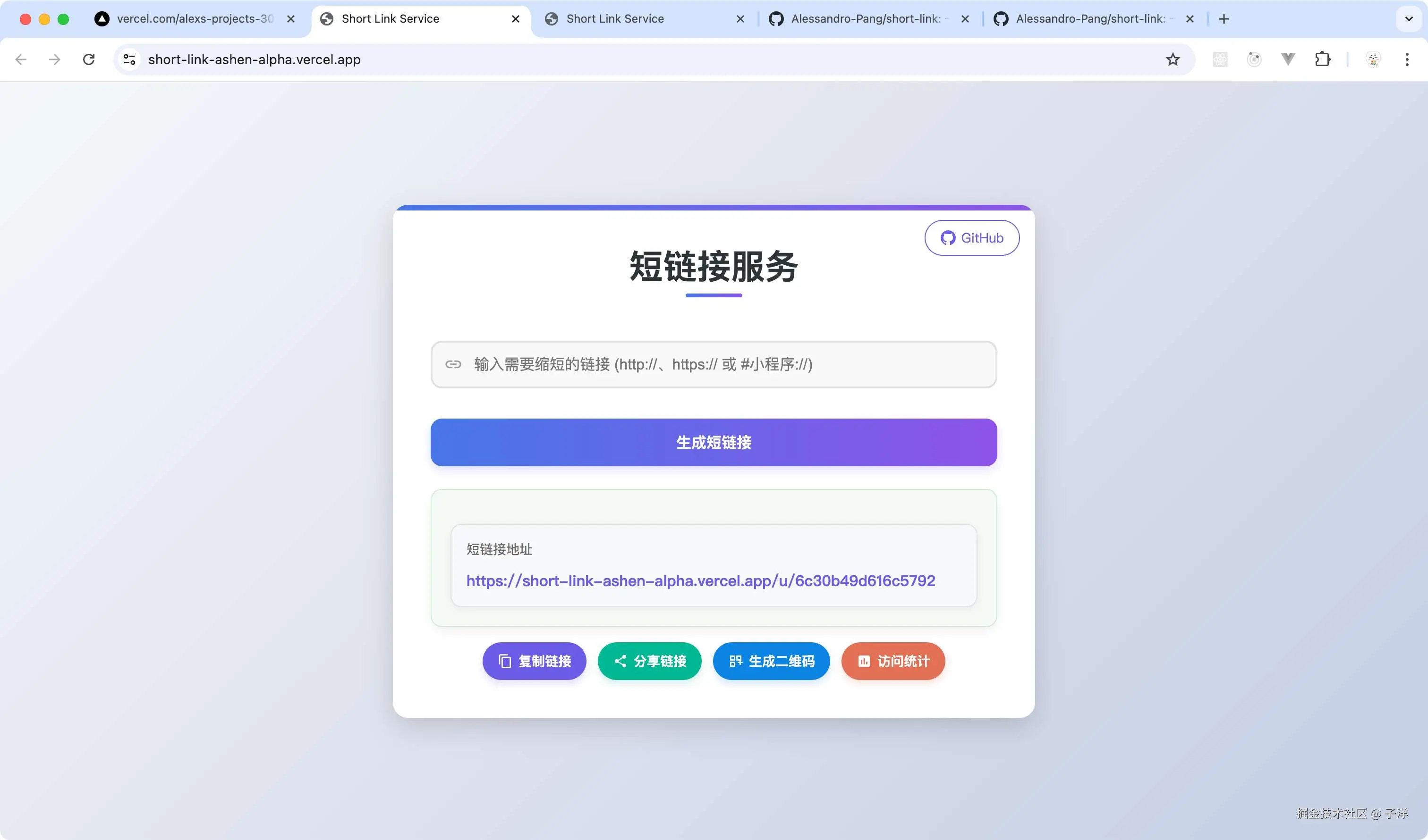 - 打开链接,输入任意URL测试生成功能