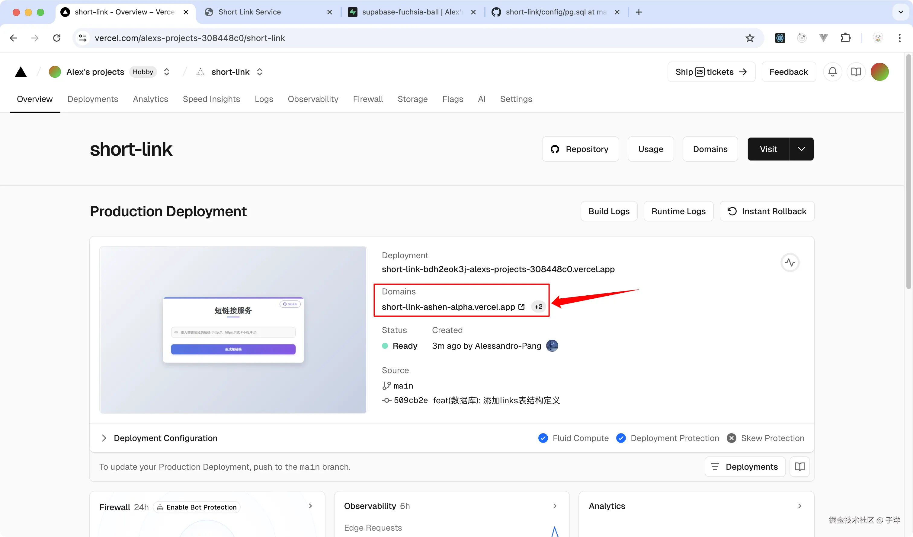 - 回到Vercel项目页面,找到项目访问链接