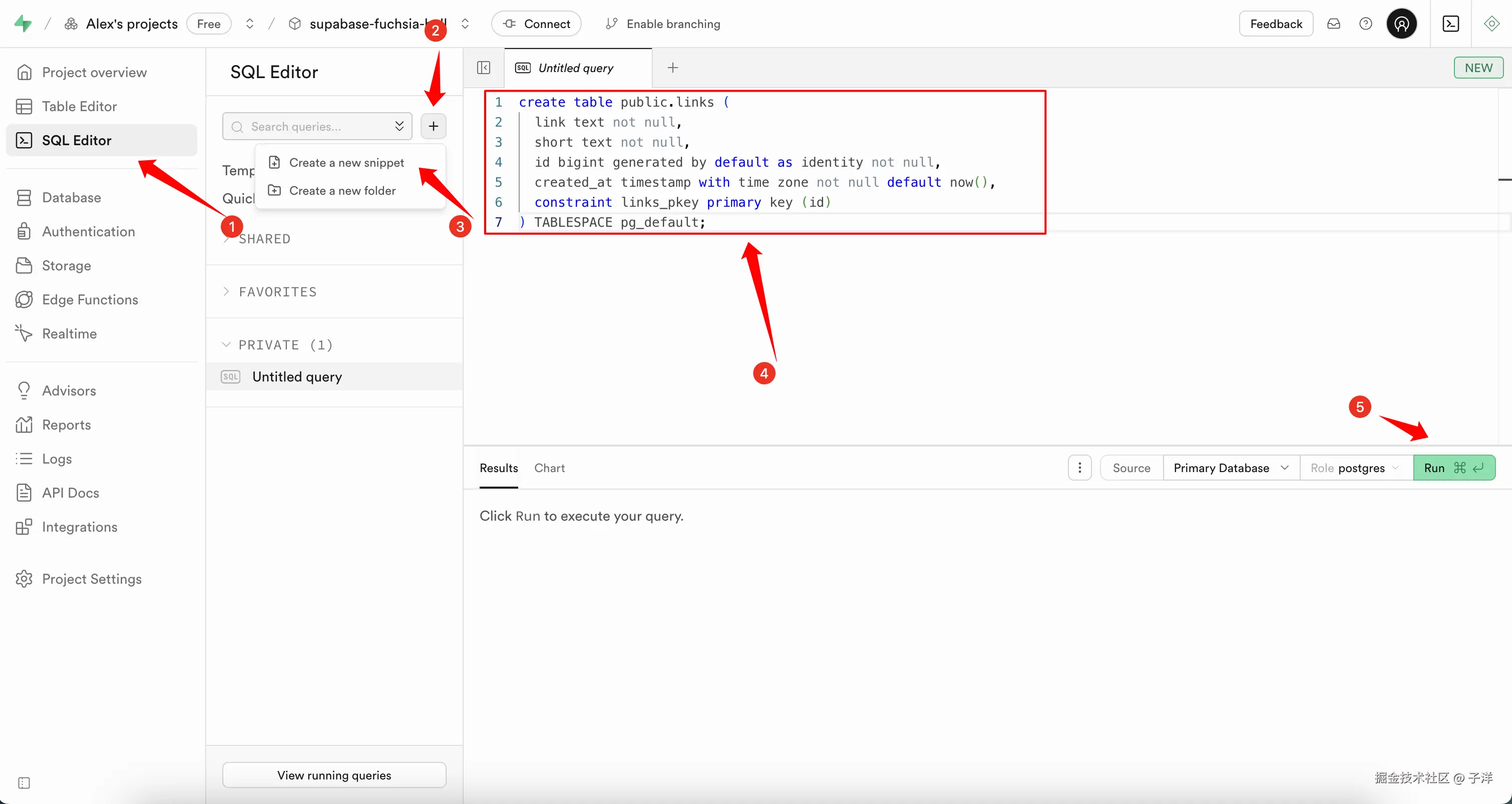 在 Supabase 控制台中,选择"SQL Editor"