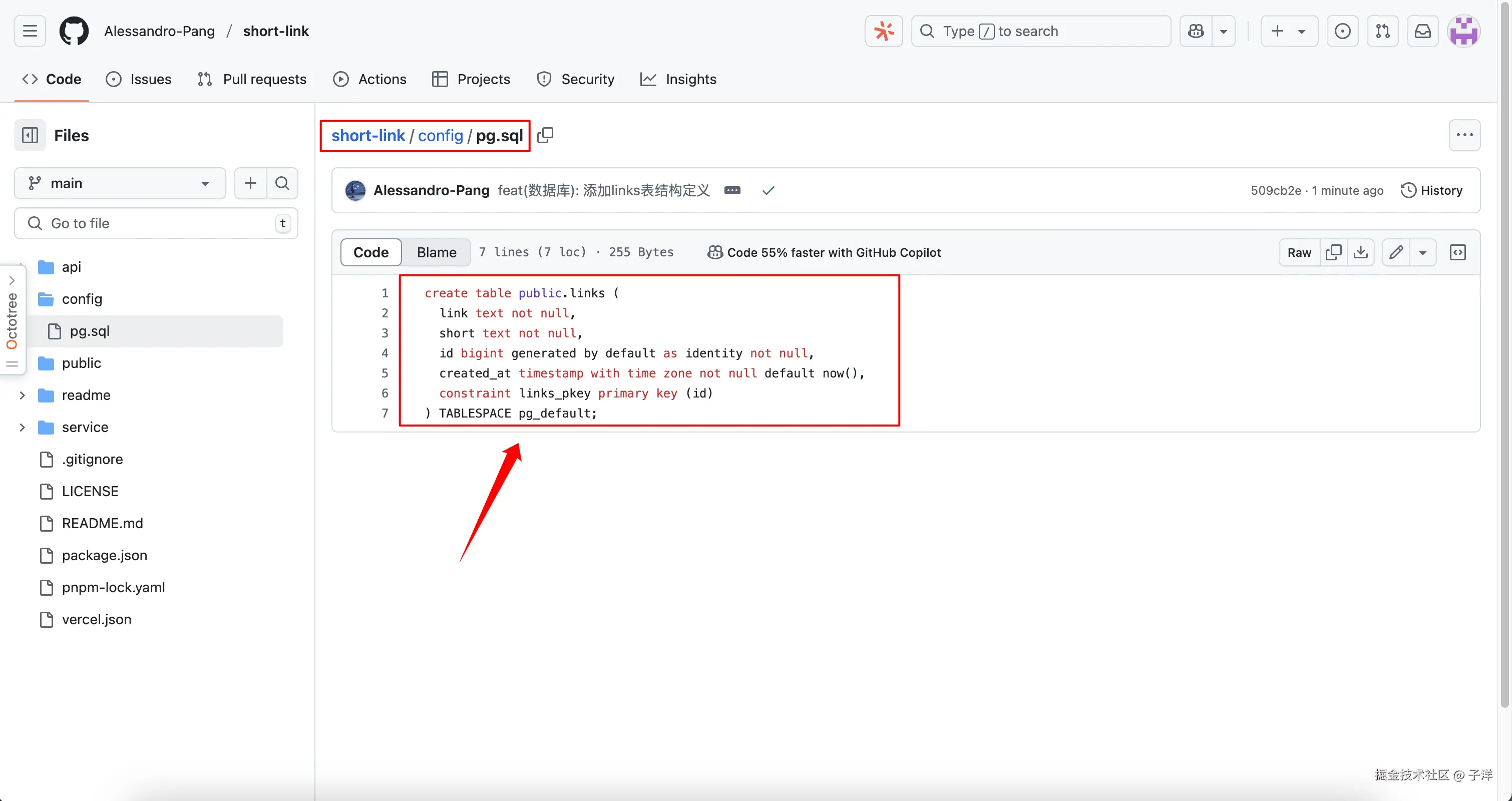 - 在项目代码的 config 目录中找到 pg.sql 文件,复制全部内容