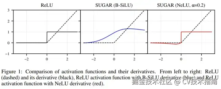 本文,来自德国吕贝克大学等机构的研究者引入了一种新颖的方法:SUGAR(Surrogate Gradient for ReLU),在不牺牲 ReLU 优势的情况下解决了 ReLU 的局限性。即前向传播仍使用标准 ReLU(保持其稀疏性和简单性),反向传播时替换 ReLU 的导数为一个非零、连续的替代梯度函数(surrogate gradient)。