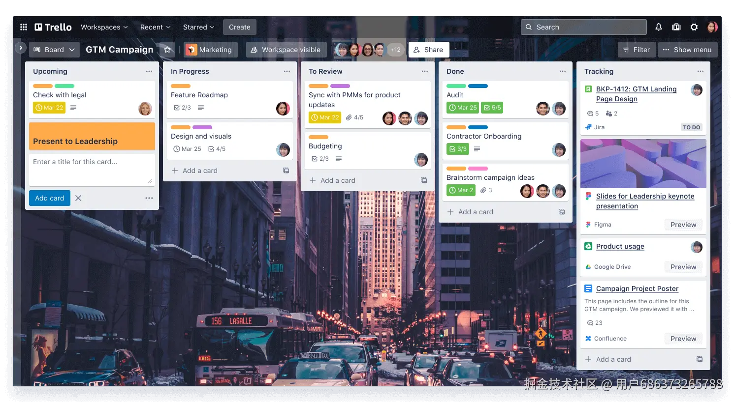 - 核心功能:经典看板工具,支持多语言、多时区协作,任务卡片同样可添加截止时间、附件、评论区@成员等。