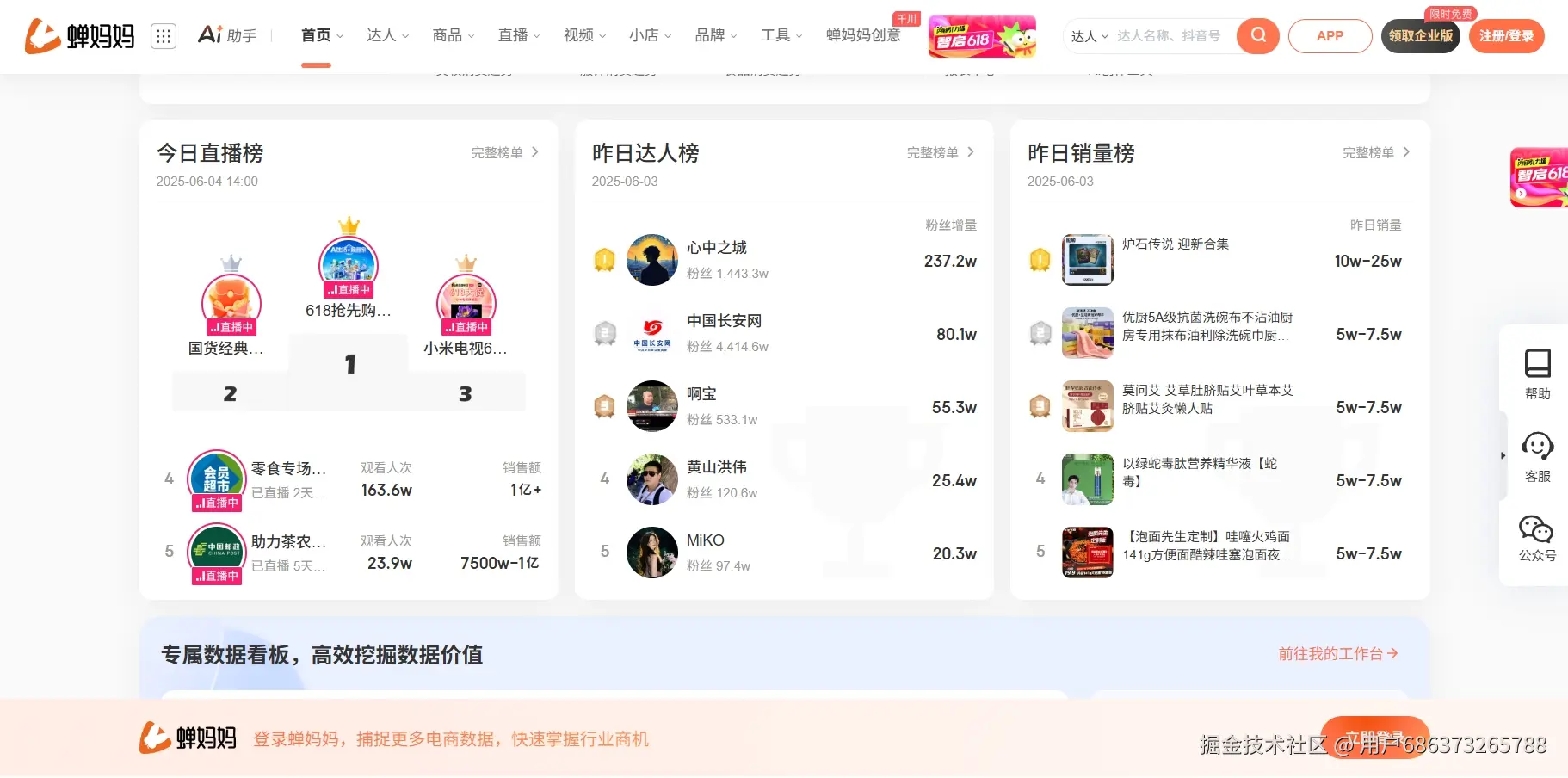 - 核心功能:聚焦抖音KOL,能深度解析直播间流量结构、商品GMV拆解及粉丝互动热力图。