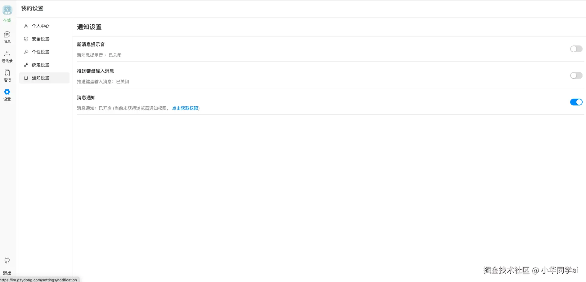 - 即时消息推送:基于 WebSocket 服务实现消息的即时推送。
