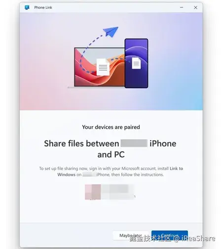 以下是通过 Phone Link 将文件从 Windows PC 传输到 iPhone 的方法: