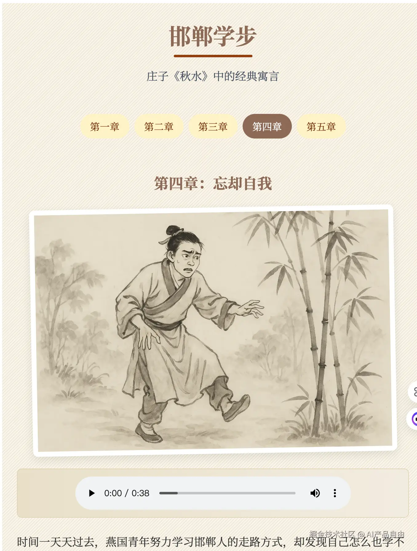 《邯郸学步》:寓言故事 + 普通话解读 +水墨画配图