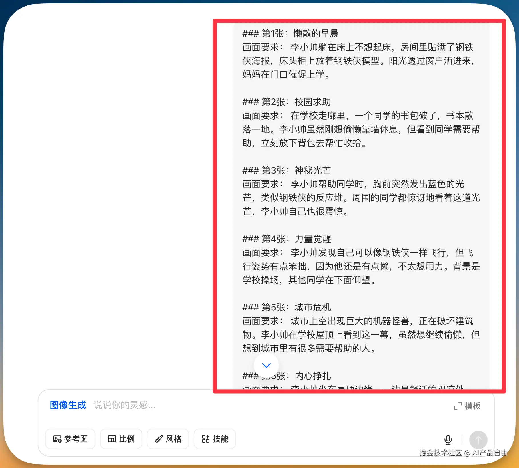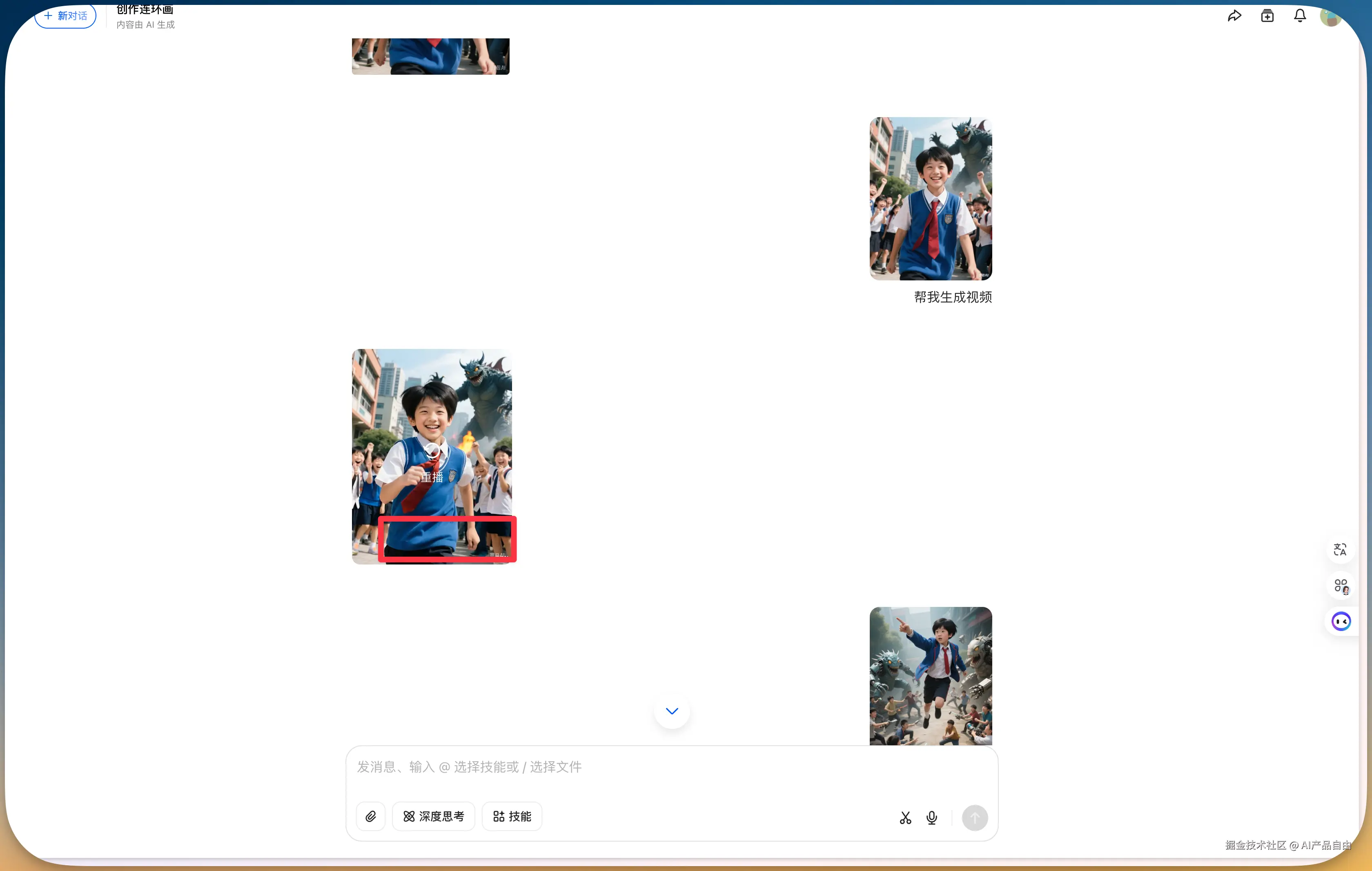 上传了图片,我们把刚才生成的文本,粘贴到豆包里,并选择图像生成。