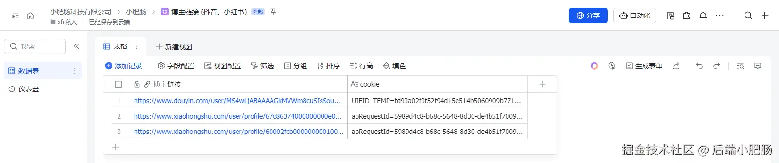 大家好,我是小肥肠,专注AI干货知识分享,最近都在分享Coze工作流,今天将给大家分享一个Coze工作流实战案例:一键采集对标账号作品信息至飞书表格,同时还能对内容进行二创。