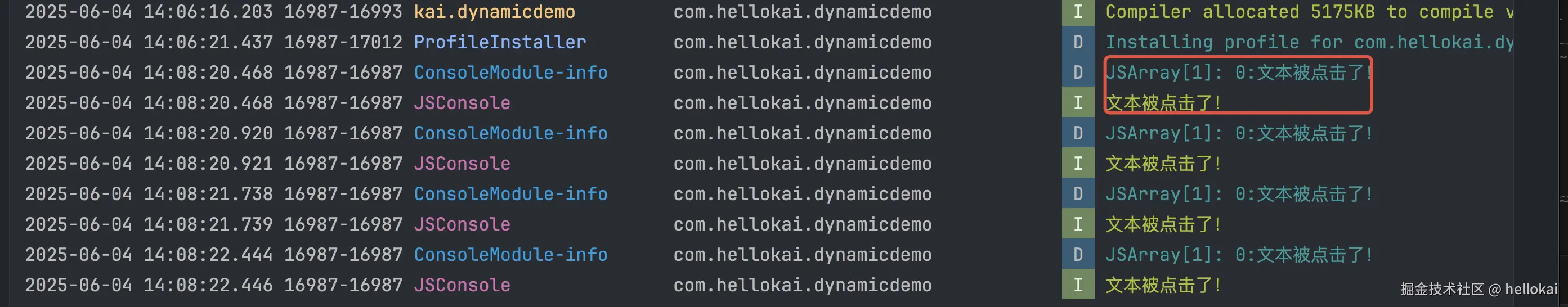console.info('文本被点击了!');