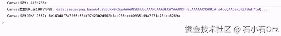 console.log('Canvas指纹(SHA-256):', hashHex);