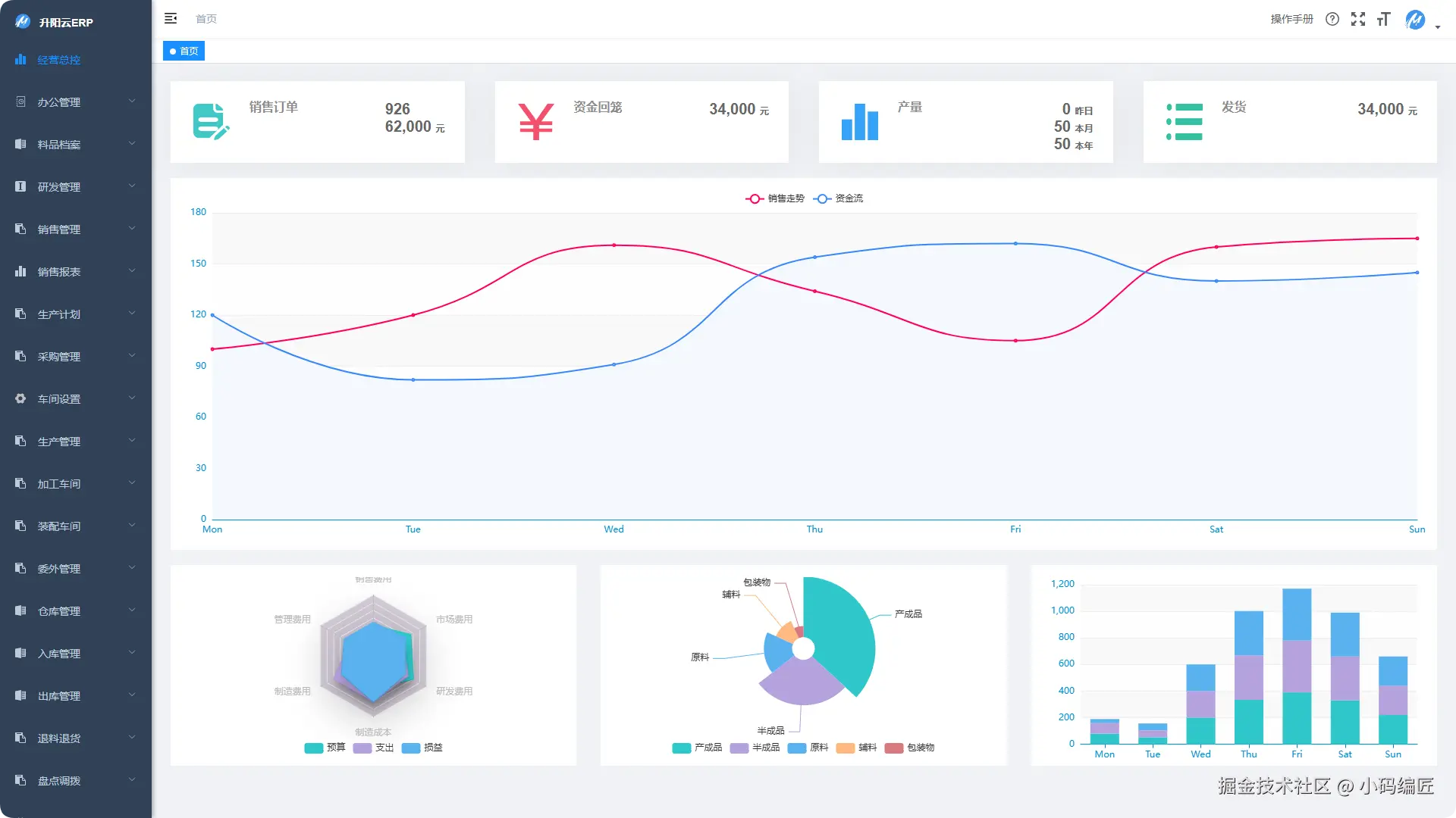 升阳云ERP系统是一款国内技术领先的ERP解决方案,专为机械制造、电子制造、仪器仪表、农药制剂等行业量身打造。系统采用前后端分离架构,支持单体部署和微服务架构切换,具备良好的可维护性和可扩展性。