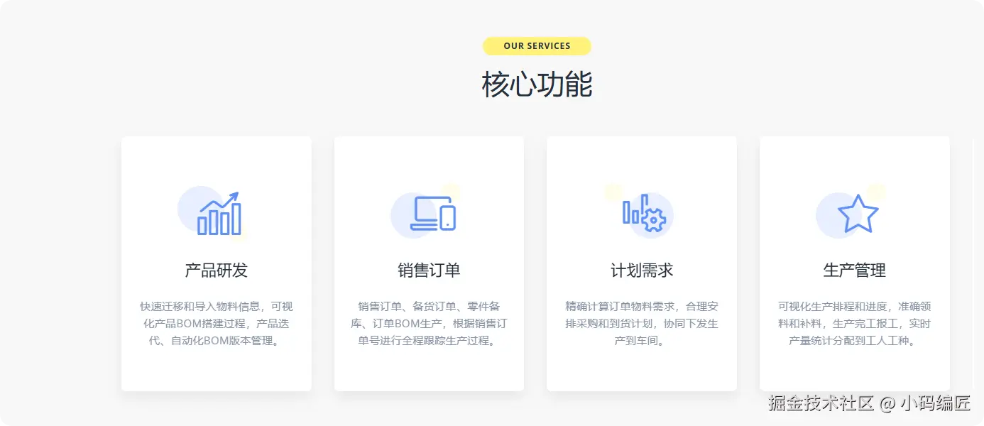 升阳云ERP、制造业ERP、开源ERP、Spring Boot、Spring Cloud、Vue、前后端分离、微服务架构、BOM管理、生产计划、仓库管理、权限管理、代码生成器、ERP系统推荐、ERP二次开发、ERP定制开发、ERP在线演示