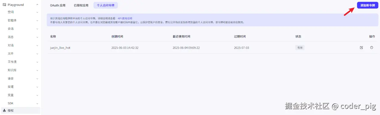 😏 掘金前些天也推出了自己的 MCP Server → 《通过 Trae 等 AI IDE 配置 MCP一键发布到掘金》,配置起来非常简单,先 生成下Token: