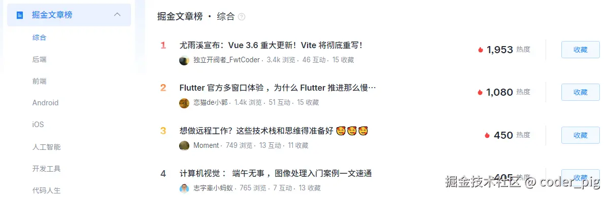 # 掘金微热榜