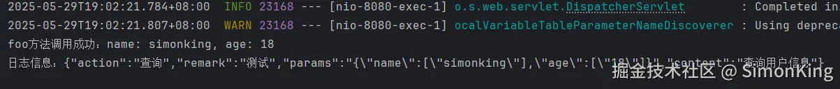System.out.println("foo方法调用成功:name: " + name + ", age: " + age);