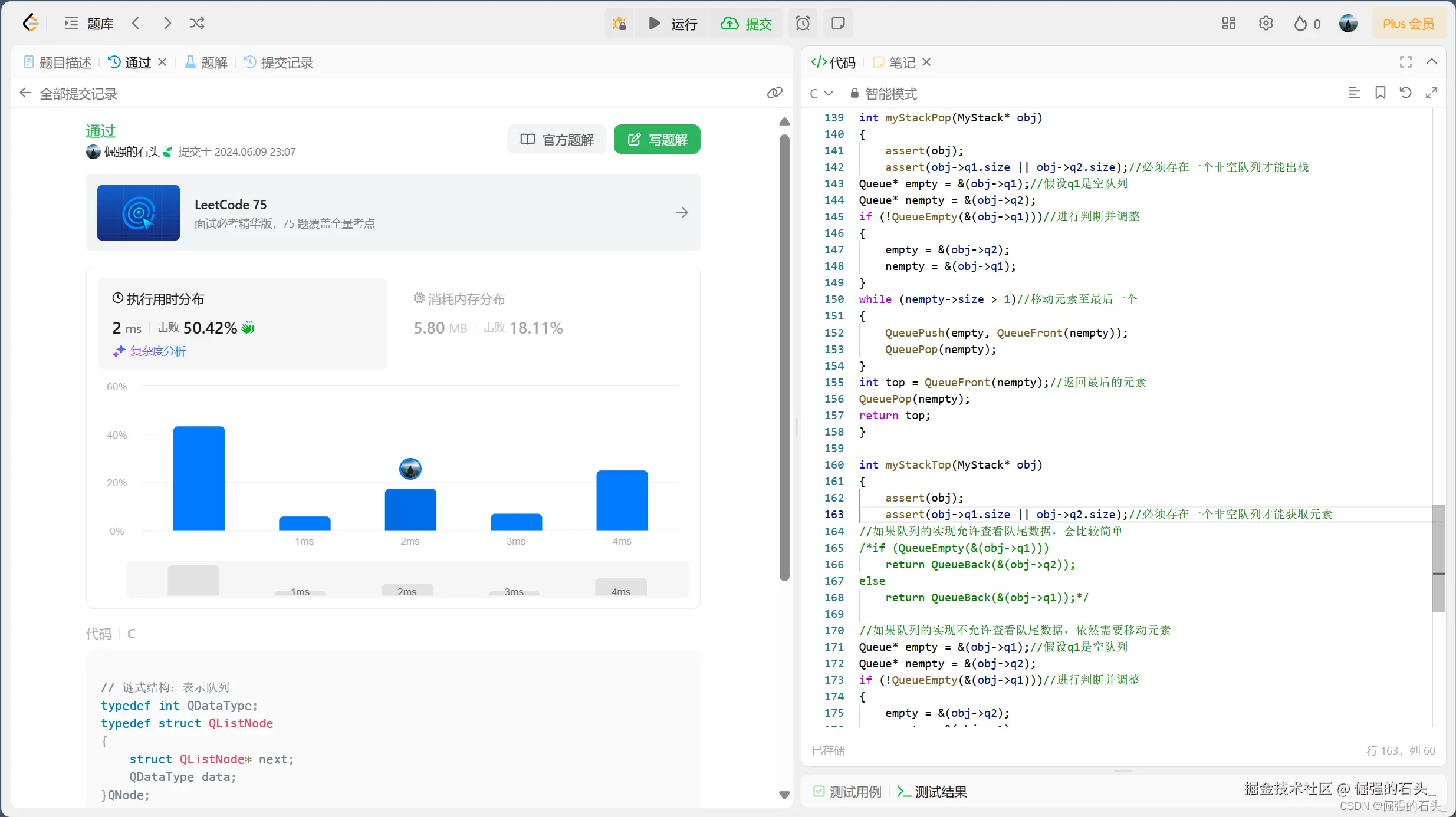 if (!QueueEmpty(&(obj->q1)))//进行判断并调整