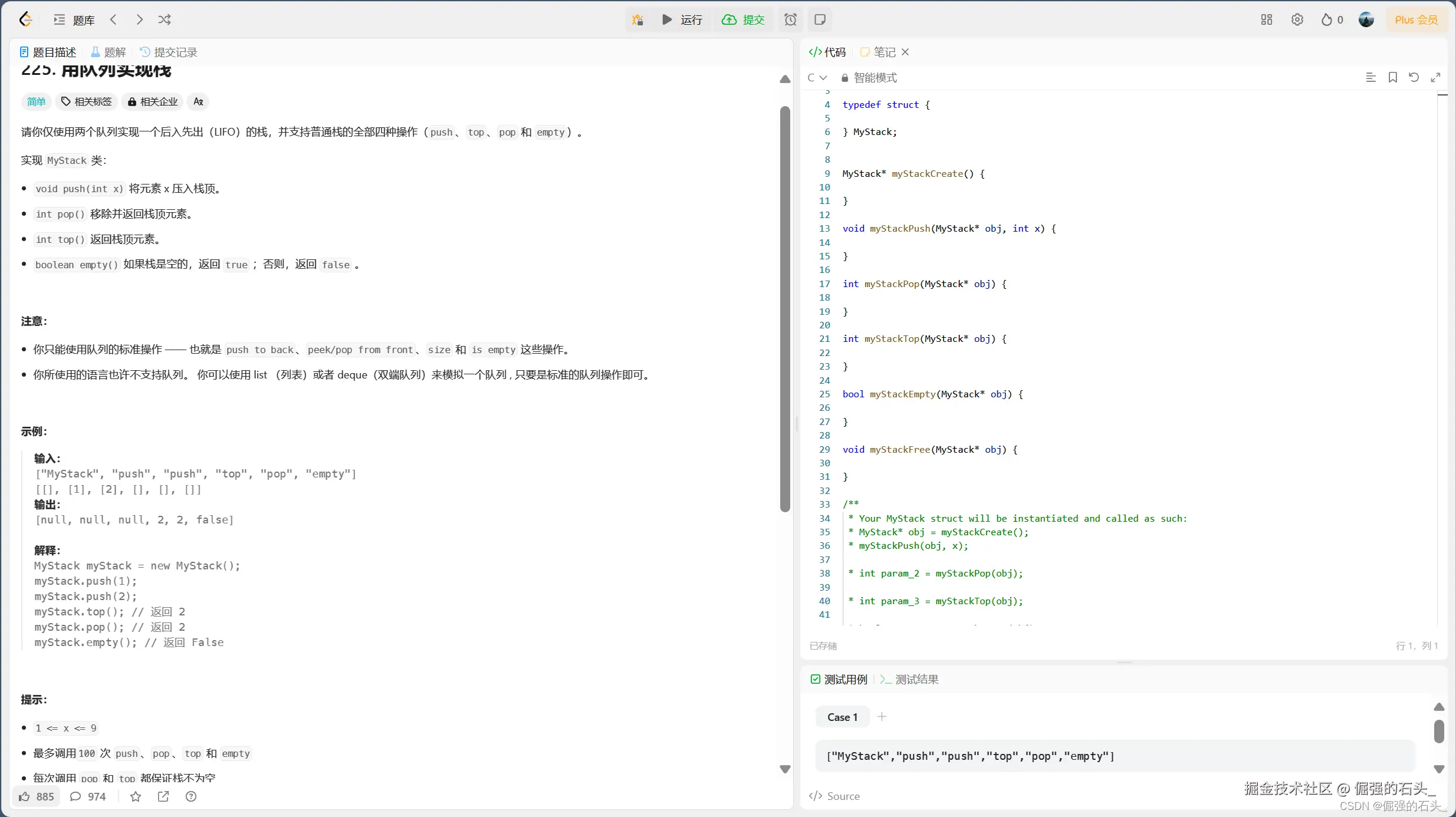 🍃基于队列实现栈的代码: