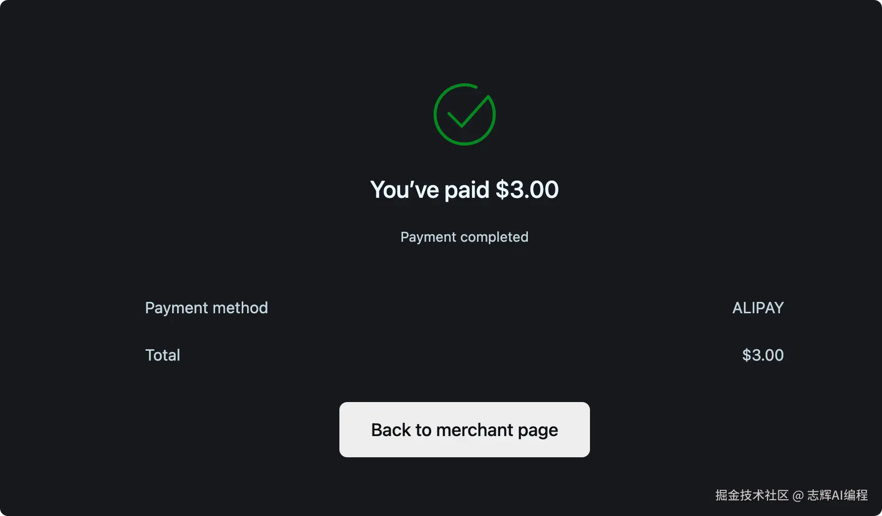 完成后就可以看到提示,你已经支付成功。