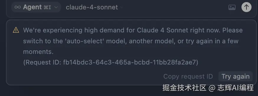最近的 Claude4 出来后,大家使用 Cursor 的群里是炸开锅了,大家疯狂用起来提高自己的生产效率。但是问题也来了,你看已经罢工不工作了,是不是你对它压榨太厉害了。