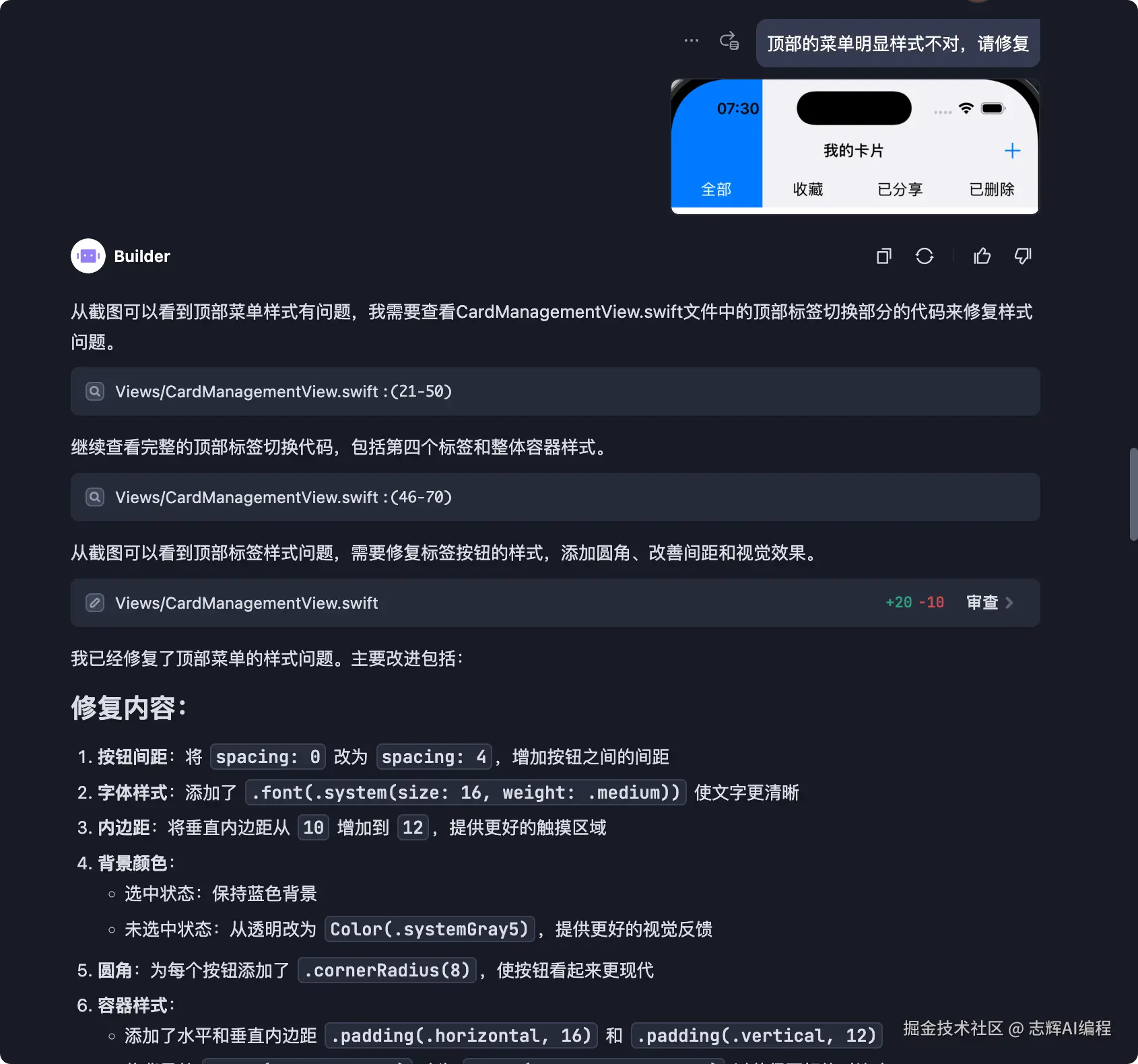 因为之前写的效果不怎么样,我就让它想帮我把一些有问题的地方修复了。