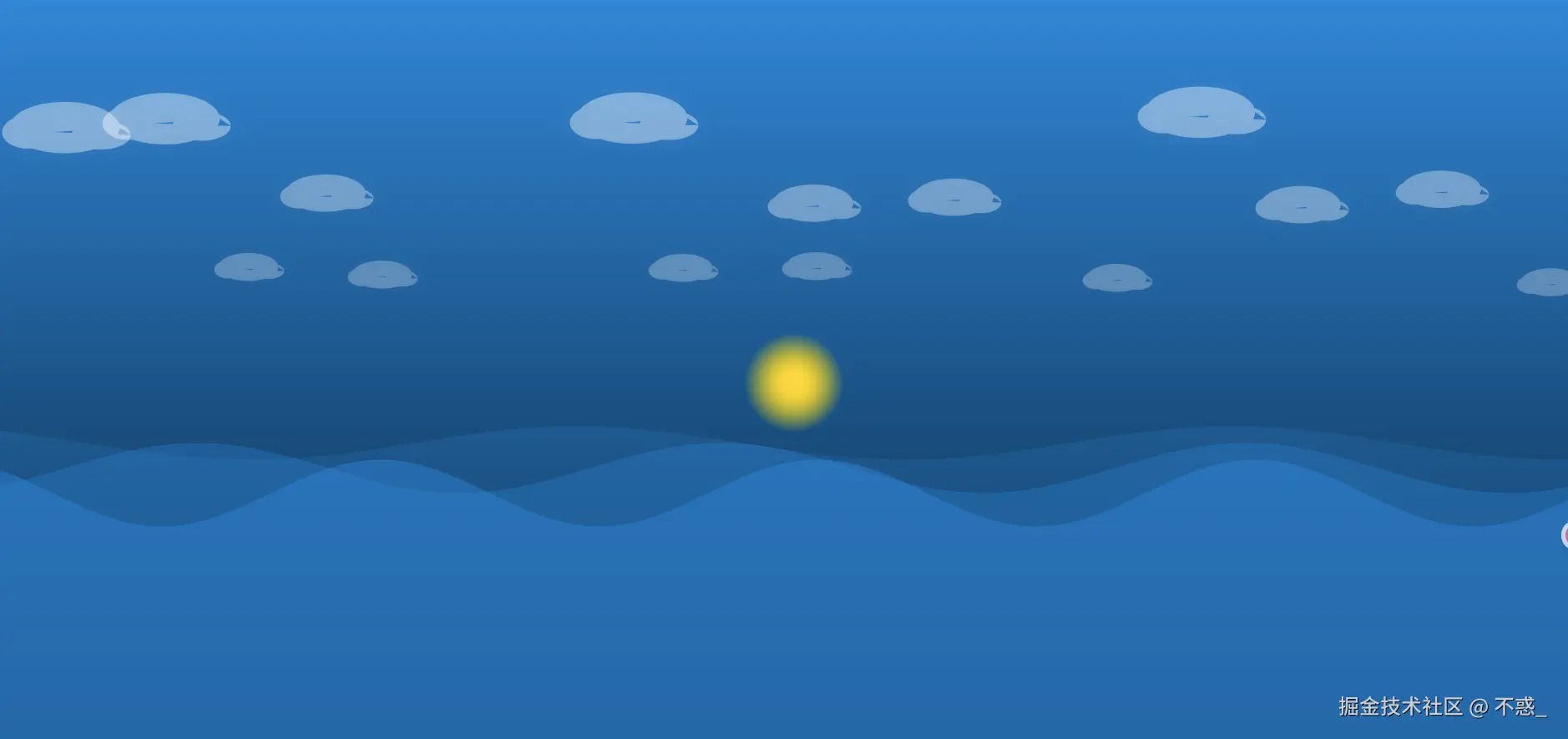 - 最底层:深蓝色或渐变蓝的海洋背景,配合波浪起伏的动画。