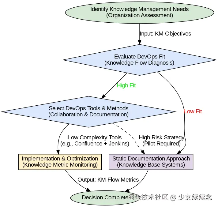 本文基于“DevOps 决策路径模型”(如下图),提出一套从需求识别、契合度评估到平台选型的系统化方法,并结合当前主流平台能力,剖析如何构建面向可持续演进的知识系统。编辑