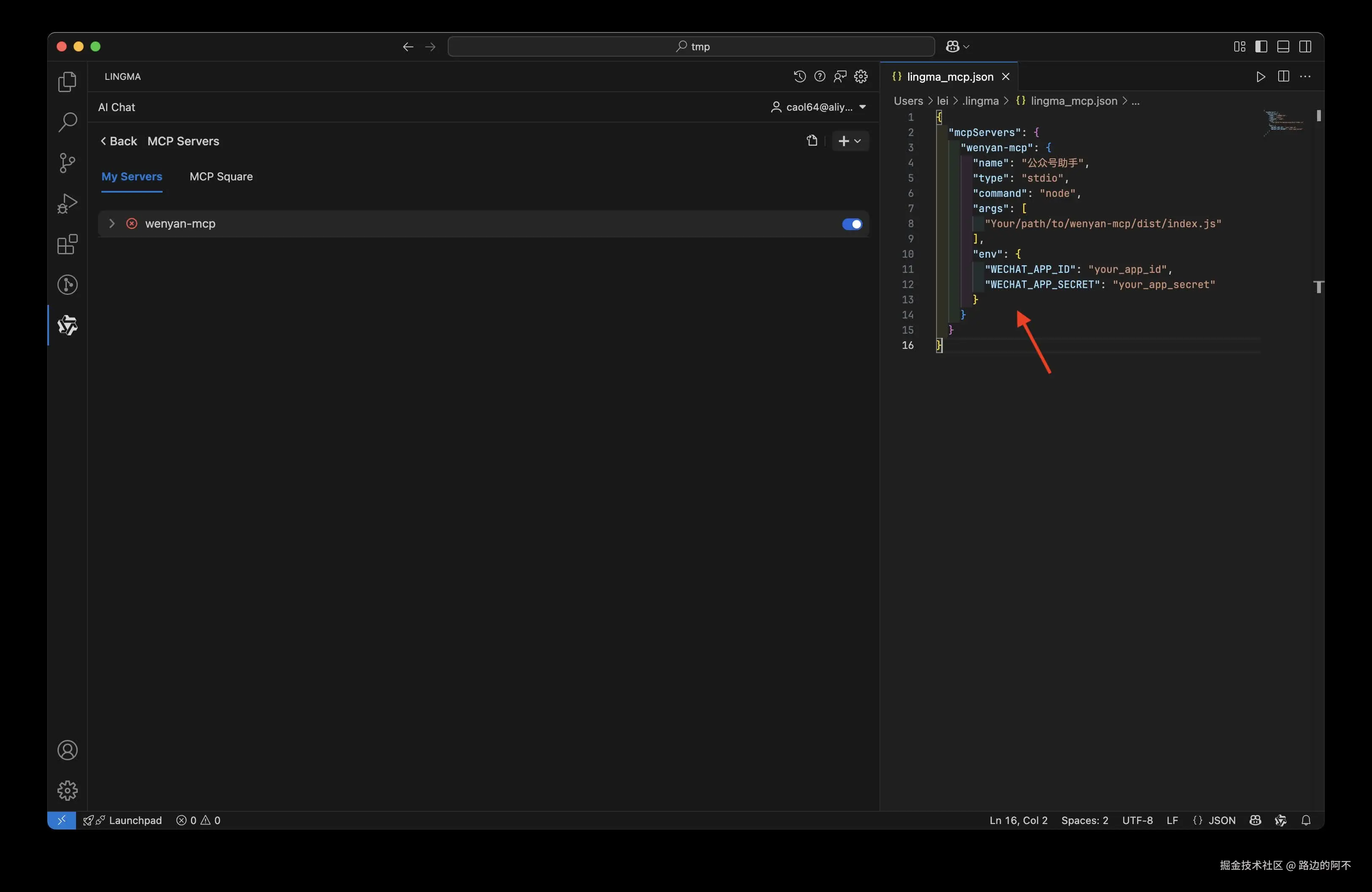 如果你已经添加过其它 MCP Server,则只要在mcpServers节点下添加wenyan-mcp节点即可。