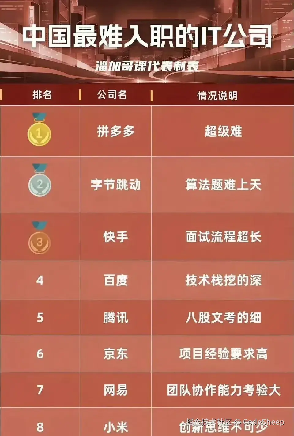 最近在网上刷到一个表格《中国最难入职的IT公司》,可能不少同学之前也刷到过。