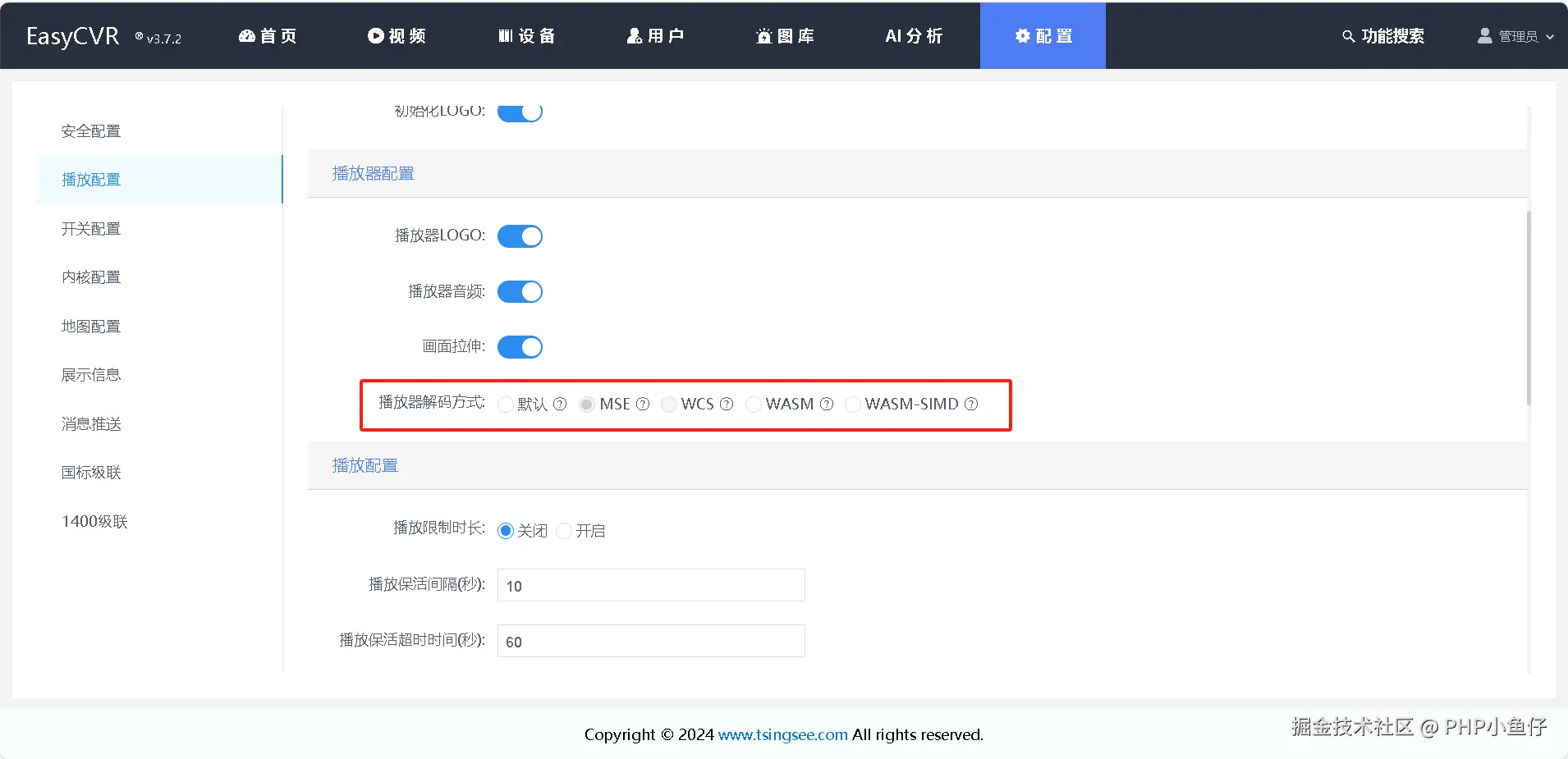在EasyCVR v3.7.2版本中,新增了更改播放器默认的解码功能,为帮助用户顺利完成该功能的配置,特制定本应用方案。