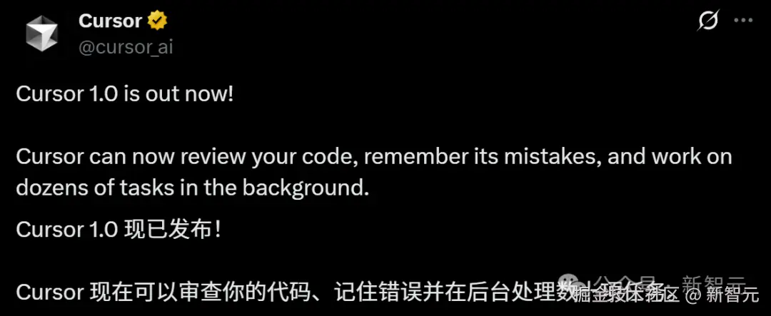【新智元导读】Cursor 1.0 正式发布,此次更新推出了多项重磅功能,无论你是开发者还是数据科学家,Cursor 1.0 都将让你的工作更高效、更智能。