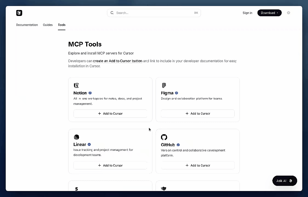 MCP 服务器列表页面:docs.cursor.com/tools